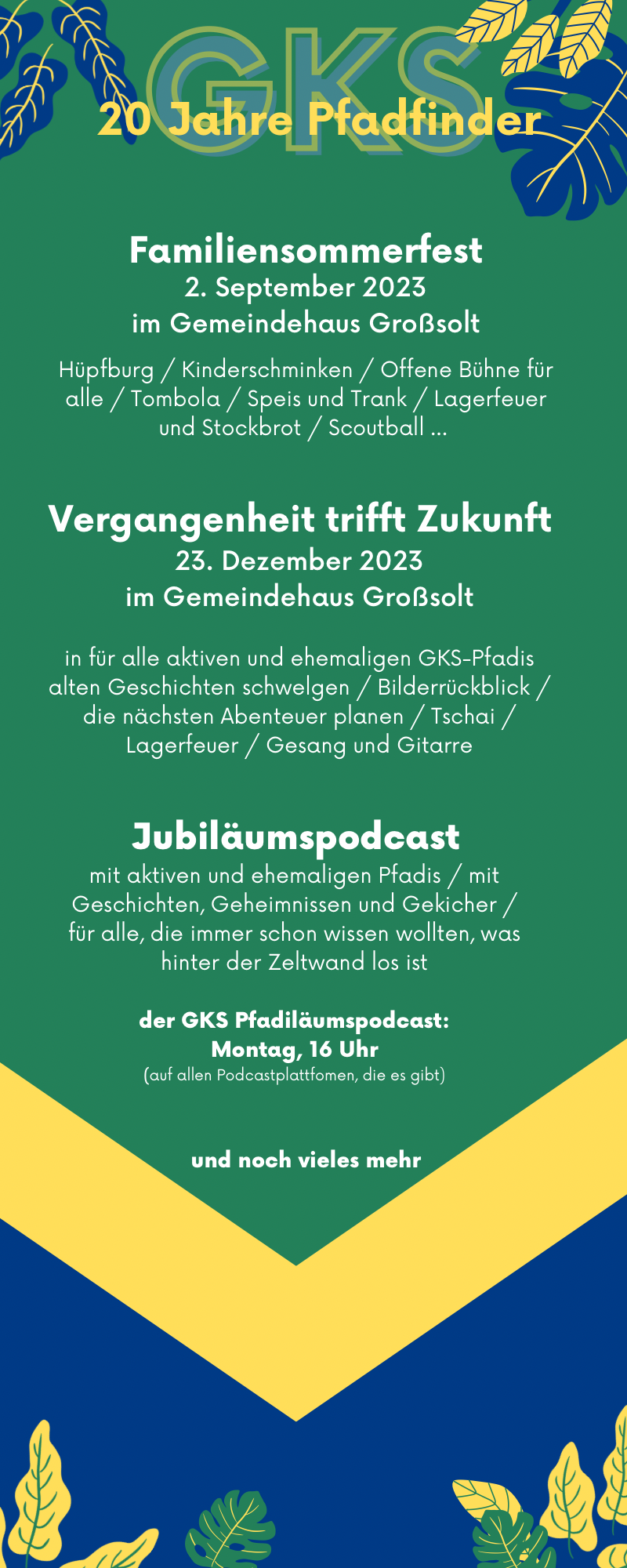 Im Herbst finden in Großsolt und Umgebung die Prüfungen der bronzenen, silbernen und goldenen Wolfsköpfe statt. Zu diesem Anlass haben wir alle regionalen Pfadfis zu Besuch. In einem Abschlussgottesdienst erinnern wir an unsere Anfänge und möchten bei einem Tschai die Pfadfigemeinschaft genießen.